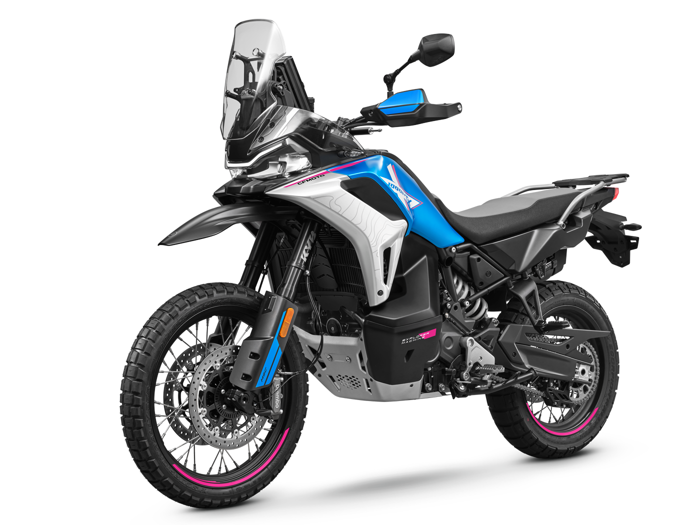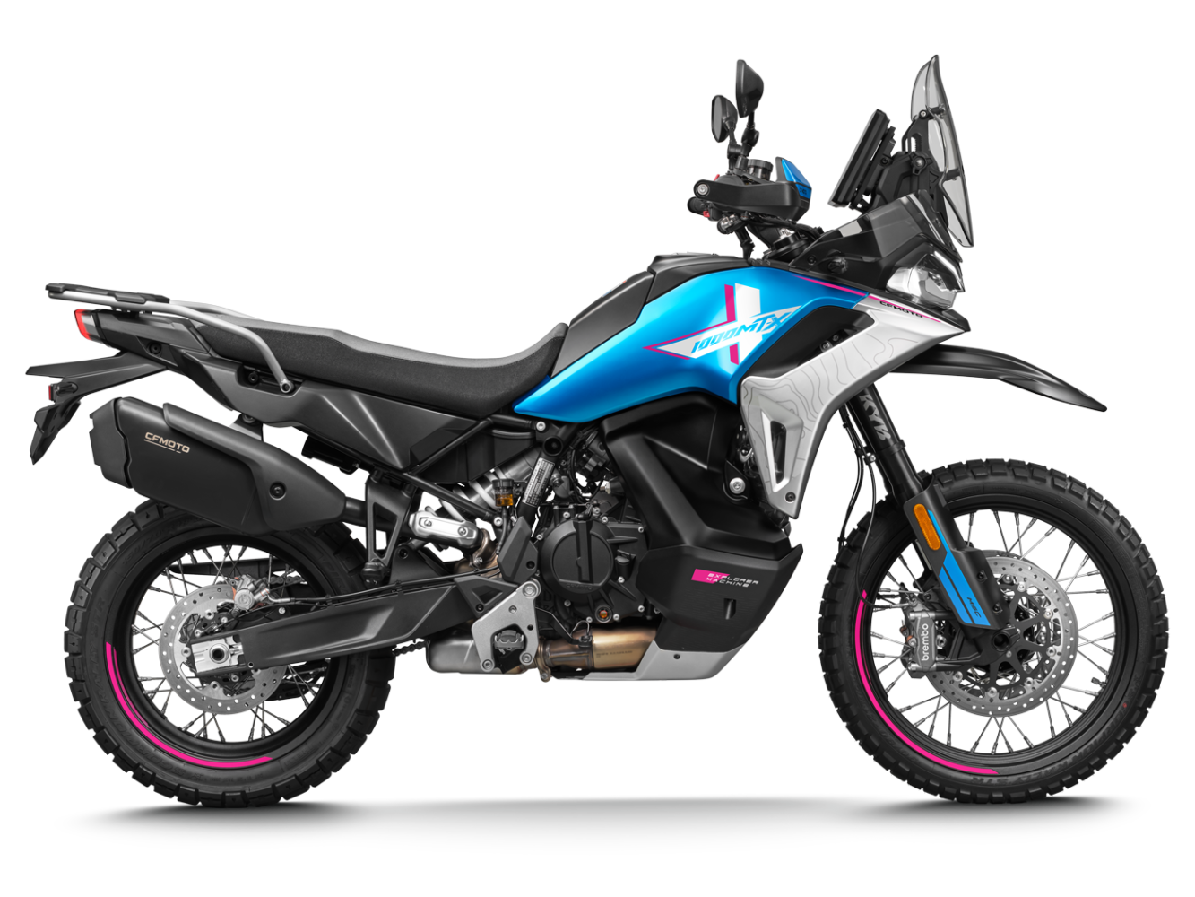 La CFMOTO 1000MT-X est une moto adventure de grosse cylindrée conçue pour repousser les limites. Dotée d’un moteur bicylindre de 946 cc, de suspensions KYB entièrement réglables, d’un freinage Brembo avec ABS Cornering et d’une technologie avancée, elle offre puissance, contrôle et confort pour les longues distances comme pour le tout-terrain engagé.